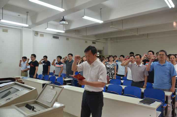 本次党课由窦书记担任主讲人,他首先介绍了廖俊波同志生平的先进事迹,接着通过视频让党员们深刻地体会到了廖俊波同志如何立足本职岗位做贡献。随后,窦书记号召在座的党员们能够深入学习廖俊波同志尽心尽责、不忘初心、扎实工作、廉洁奉公的精神,将党的方针政策落实在学习及工作中。最后,在窦书记的带领下,在座教师及员工党员重温了入党誓词。