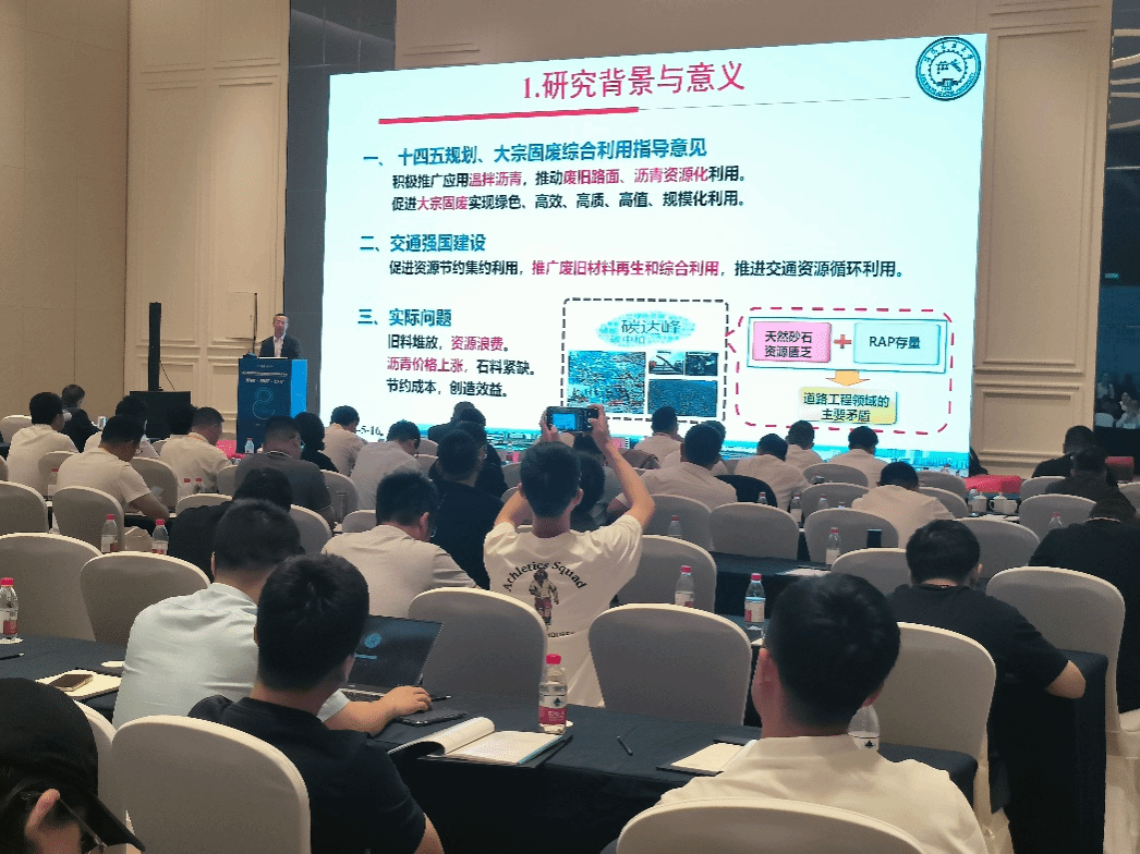 会议以“低碳、智能、安全”为主题,设置了主旨报告会、主题论坛、专题论坛、主题沙龙、成果对接会、现场考察观摩等环节。设有道路工程智能建造、道路工程绿色养护、路面智能创新技术、钢渣沥青路面高值化利用、路面高性能再生新技术应用等7个论坛。公司杨彦海教授、金鑫老师和杨野老师应邀参加此次盛会。会上,杨彦海教授做了题为《沥青混合料温拌再生一体化利用技术》专题报告,以冷热再生技术应用中需要解决的关键技术为切入点,重点介绍了具备温拌剂与再生剂双重功能的高性能温拌再生剂的性能特点及其在沥青混合料中的应用情况,为实现沥青路面固废资源高比例、高品质、高层位的循环利用和低碳、绿色、可持续发展提供了又一解决途径。并与现场专家和技术人员进行深入沟通和交流,得到与会专家的广泛关注和高度认可。最后,杨彦海教授还向参会人员介绍了美丽的tyc86太阳集团欢迎您。