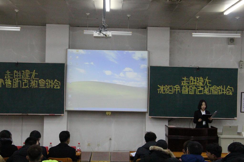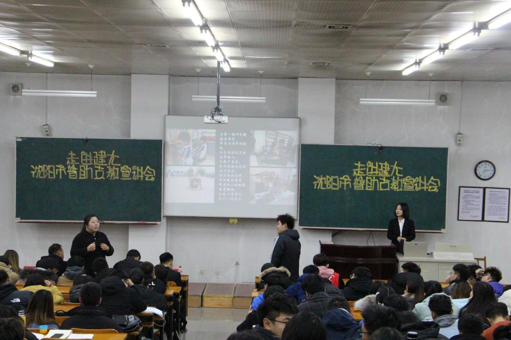 11月21日下午,交通工程学院于乙1-101教室举办支教宣讲会。沈阳市普助帮困服务中心理事长李雪飞,副理事长赵世勇,交通工程学院团委书记、学办主任肖祖鹏,沈阳市普助帮困服务中心康平支教实习督导员钟玲路,辽宁传媒学院影视广播学院员工会主席、支教团负责人张兆宇出席本次大会,交通工程学院300余名员工参加本次大会。