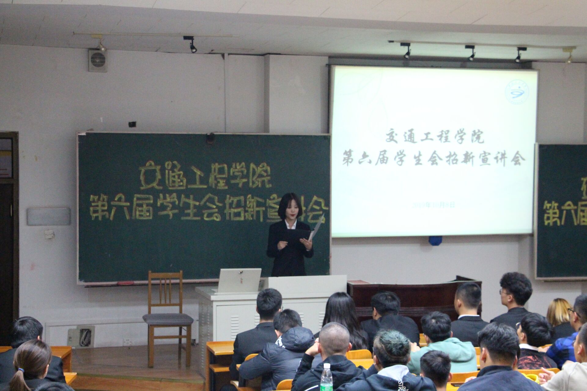 10月8日晚,交通工程学院于乙4-201教室召开员工会招新宣讲大会。交通工程学院主席团成员、员工会各部门部长,副部长、部分19级新生200余人参加本次大会。