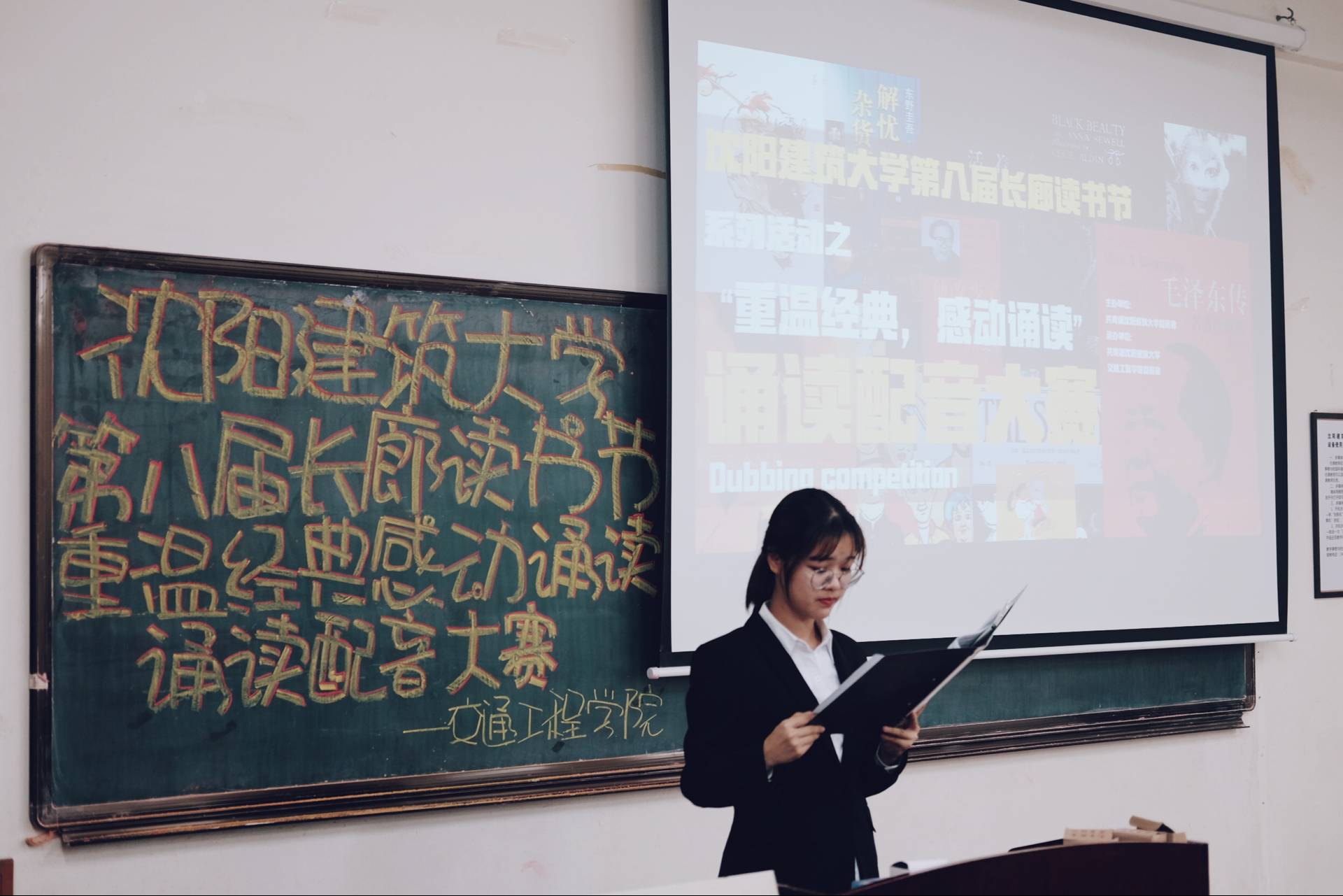 11月26日下午,交通工程学院团委组织部于C3—301, C3—305教室举办第八届长廊读书节之“重温经典,感动诵读”配音大赛。十二个学院的分管长廊读书节的员工负责人担任比赛评委,来自六个学院的八支参赛队伍及观众共一百余人出席活动。