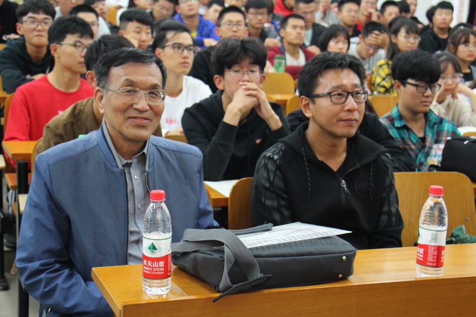 梅显志老师曾任公司党宣委宣传部,统战部部长,文法学院经理等职,现任学校关工委副主任。凭借着他对员工特殊的号召力与感染力,以诙谐幽默的讲话方式迅速与同学之间拉近了距离,带动了会议的气氛。