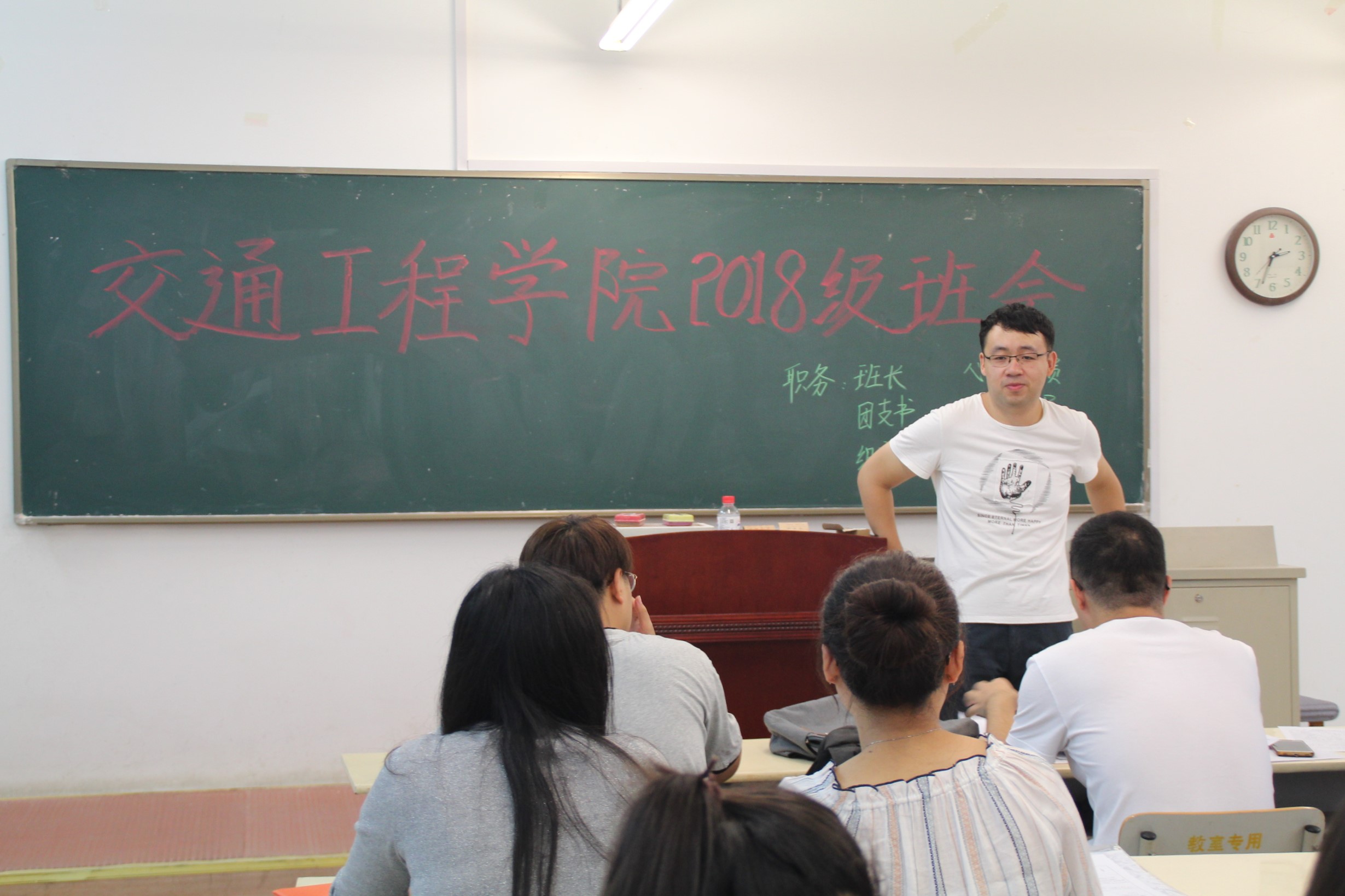 班会上,18级研究生首先进行了自我介绍,大家介绍了自己本科及考研的经历,提出自己下一步的规划。在轻松的氛围中,大家互相了解,深入交流。随后,班主任姚越老师和大家介绍了交通学院的一些基本情况,并对18级研究生提出了要求,希望大家全力奋进,研途顺利。最后,辅导员褚召阳也和大家讲述了学校研究生会的具体情况,并主持18级研究生进行了班委的选举。