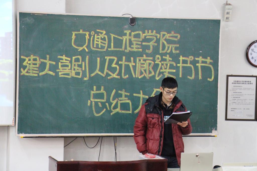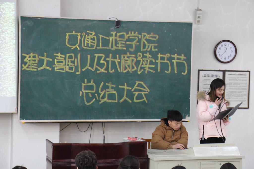 12月13 日,交通工程学院建大喜剧人及长廊读书节总结大会于乙1-101教室顺利召开。交通工程学院团委书记、学办主任肖祖鹏及主席团八位成员出席本次会议,交通学联全体成员150余人参加本次会议。