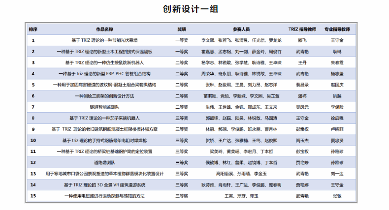 近日,2023年辽宁省创新方法大赛总决赛落下帷幕。经过激烈角逐,交通与测绘学院滕飞老师获得创新设计一组一等奖、创新设计二组三等奖,姚越老师获得创新设计一组二等奖,李保险老师获得创新设计一组二等奖,孙雅珍老师获得创新设计一组两个三等奖的好成绩。